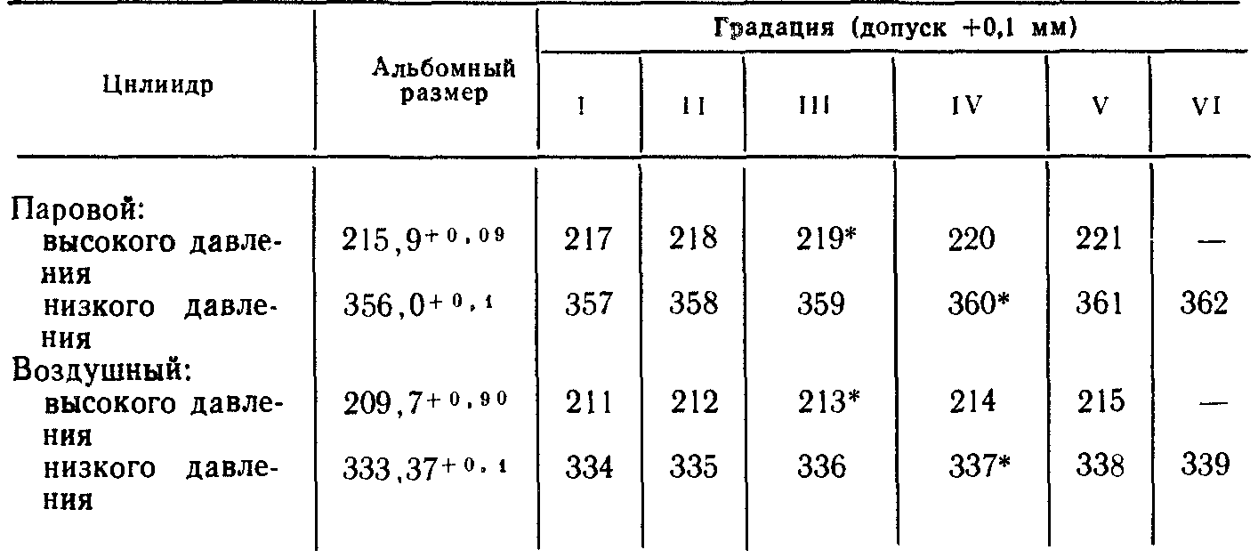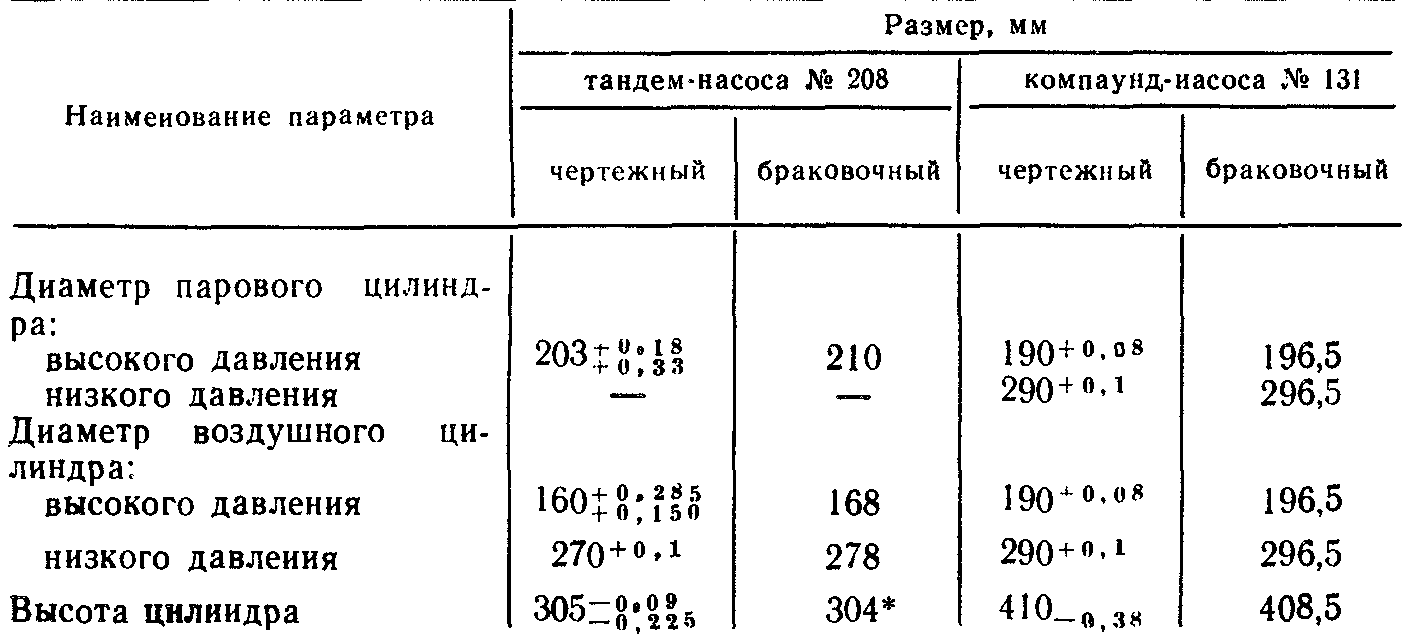 Таблица 3а. Градуиращи размери на цилиндрите на комбинираната помпа № 131 * Ограничен размер по време на ремонти на class = "aligncenter" width = "1410" height = "1501" [/ img] Бележки. 1. За да се натисне втулките, вътрешният диаметър на големите цилиндри на парна и въздушна помпа е пробит до размер 308 + 0,05 mm, а малкият - 208 + 0,045 mm. Външните диаметри на втулките (за пресоване) трябва да бъдат 308 + 0,1 mm за големи цилиндри, 208 + 0,075 ΜΜ за малки цилиндри. Вътрешният диаметър на втулките преди пробиване трябва да бъде съответно 285 и 185 mm, а след пробиване има чертеж размери.