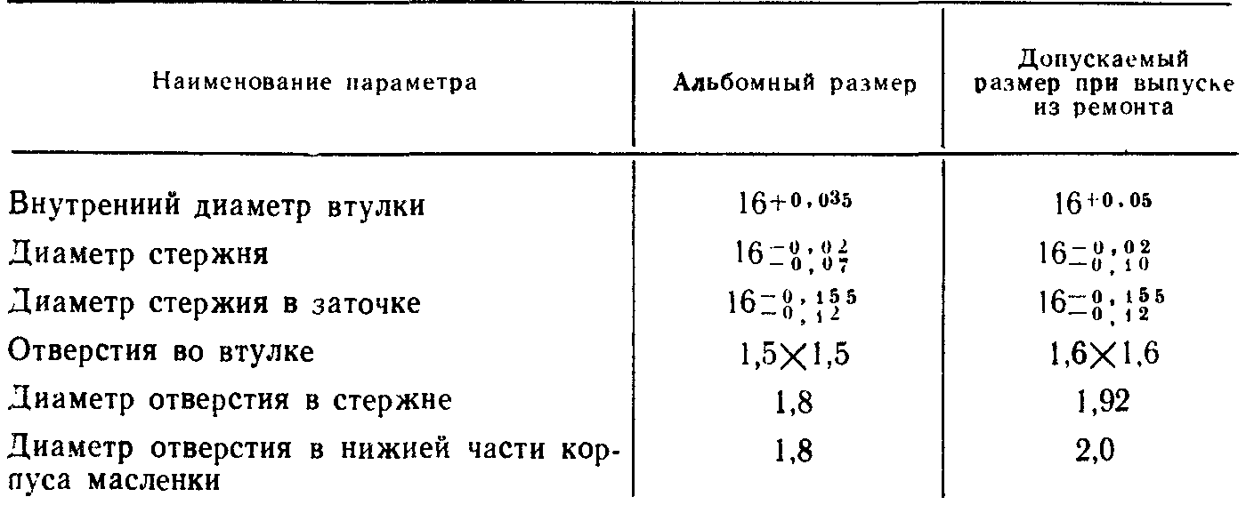 Таблица 11. Норми на допустими отклонения и износване на части на автоматична смазка № 1053, mm