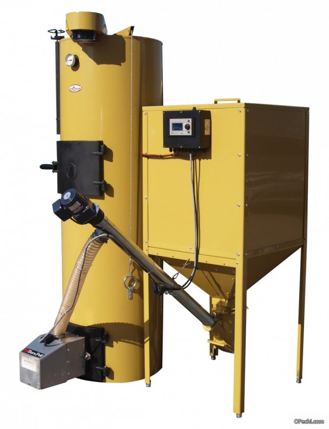 Версията на пелети е оборудвана с разпределител на пелети и колектор за подаване на въздух. Пелетните котли имат следните данни: