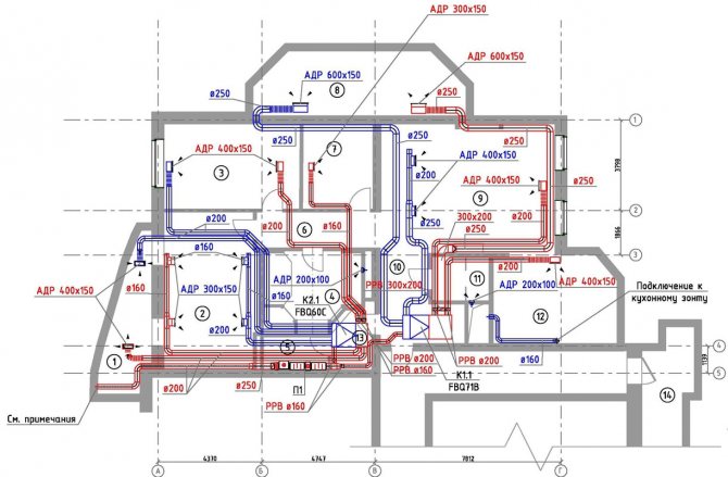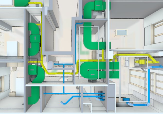 Подаването на въздух до помещението и отстраняването му се извършва чрез системата за въздуховоди. Каналната мрежа съдържа директно тръби, адаптери, сплитери, завои и адаптери, както и дифузори и разпределителни решетки. Диаметърът на въздуховодите, съпротивлението на цялата мрежа, шумът от работата на вентилацията и мощността на инсталацията са тясно взаимосвързани. Ето защо за оптимална вентилация в процеса на проектиране е необходимо да се балансират всички показатели. Това е трудна работа, която само професионалистите могат да свършат правилно.