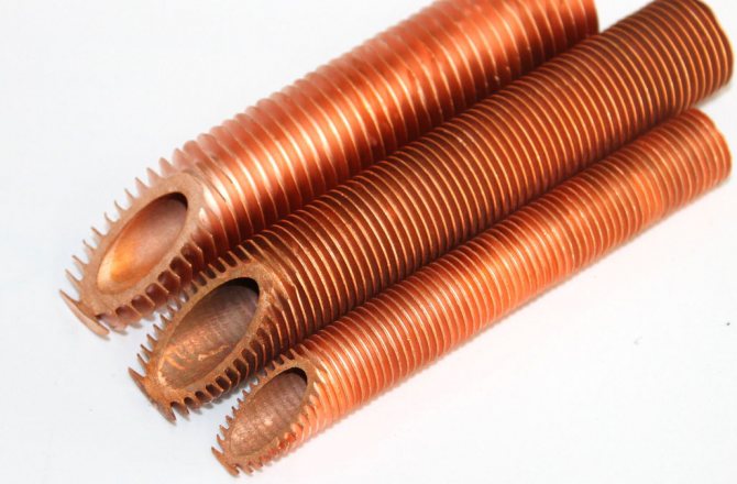 Важно! Често купувачите се интересуват кой топлообменник да изберат - стомана или мед. Трябва да изхождате от физичните и химичните свойства на черните и цветните метали. Специфичният топлинен капацитет на медта е по-нисък от този на стоманата.