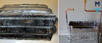 Радиаторът е скъп артикул. Смяната му е скъпа. Ако има теч, топлообменникът може да бъде запоен при 180 ° C. Нуждаем се от поялник с мощност 0,1 kW. Течовете често се появяват от външната страна на топлообменник, направен от евтин материал. Микропукнатината се почиства с шкурка, избърсва се с парцал с разтворител и се запечатва. Преди запояване водата се източва чрез издухване на останалите капки с помощта на компресор или прахосмукачка.