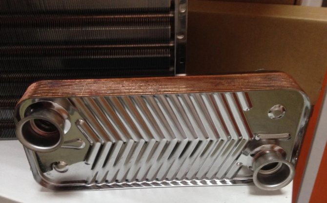 Нарича се още топлообменник за подаване на топла вода (БГВ). Това е правоъгълно устройство с взаимосвързани вътрешни плочи от неръждаема стомана от хранителен клас. Колкото повече има, толкова по-висока е производителността на устройството. Вътре те образуват от 8 до 30 слоя. Високата топлопроводимост на материалите и голямата площ на взаимодействие осигуряват необходимия топлообмен по време на бързото движение на водата.