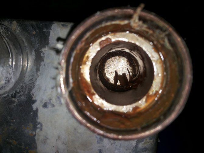 - В самото начало може да се открие замърсяване. Търсим плака визуално във входните дупки. Вдуваме въздух в детайла и също така се ориентираме по звук. Почистваме, ако топлообменникът е запушен. Бучки от варовик могат да изпаднат дори след леко почукване.