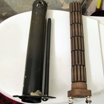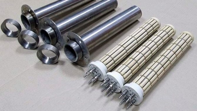 Нека си припомним старите електрически готварски печки с отворена спирала, използвани в средата на миналия век. Ако покриете такава спирала със слой чист фин пясък и я поставите в метална тръба, затворете краищата с изолационен щепсел, получавате нагревателен елемент за бойлер. Навитият проводник не влиза в контакт с вода и метал, но загрява медната или стоманената тръба. В резултат на това няма опасност от токов удар и водата се загрява от спуснат, мокър или отворен електрод.