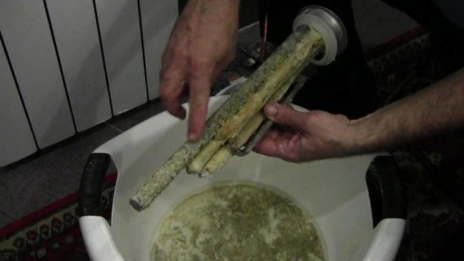 За да почистите нагревателния елемент от котлен камък, той трябва да бъде потопен в гореща вода с анти-котлен камък или държан в разтвор на лимонена киселина. След това се уверете в целостта на случая.