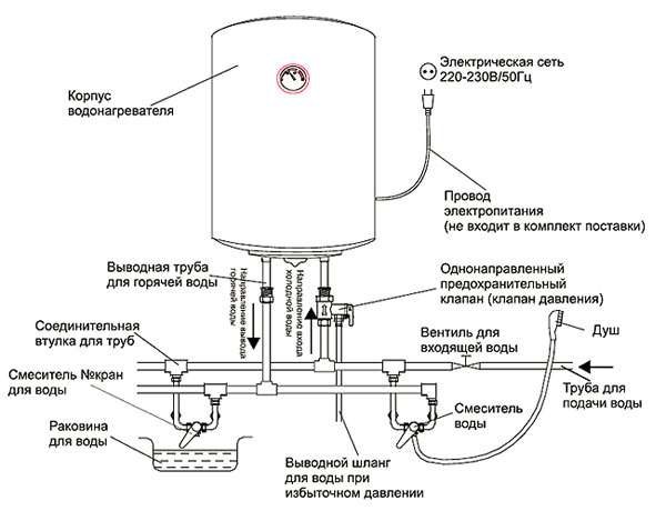 Схемата на свързване на бойлер Thermex при използване на проточни устройства ще бъде същата, с изключение на това, че резултатът ще се почувства незабавно.