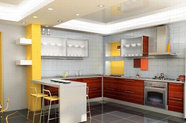 - Изработване на декоративна кутия от гипсокартон. Кутията е съобразена с дизайна на кухнята, докато самият дизайн е боядисан в цвета на тапета.