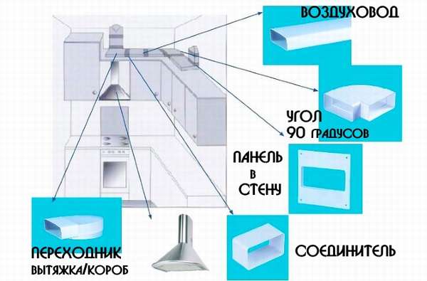 Има огромен брой, благодарение на които няма да е трудно да се инсталира въздуховод. Много е важно правилно да изберете дизайна и размерите на въздуховодите за кухненския аспиратор.