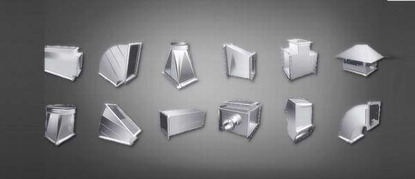 - правоъгълни конструкции (често плоски въздуховоди за абсорбатори),