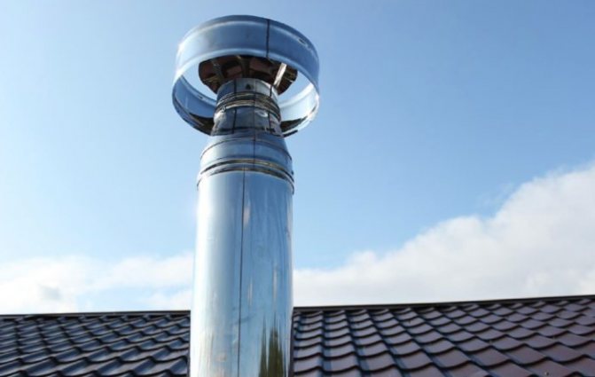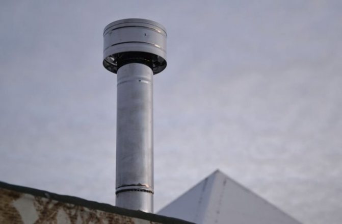 Правилното позициониране и разположение на комина в комбинация с дефлектор със сложен дизайн ви позволява да решите проблема с обратната тяга. Поради това поривите на вятъра с всякаква сила не издухват пламъка на горелката на котела, а само увеличават течността в комина, което позволява на оборудването да работи по-ефективно.