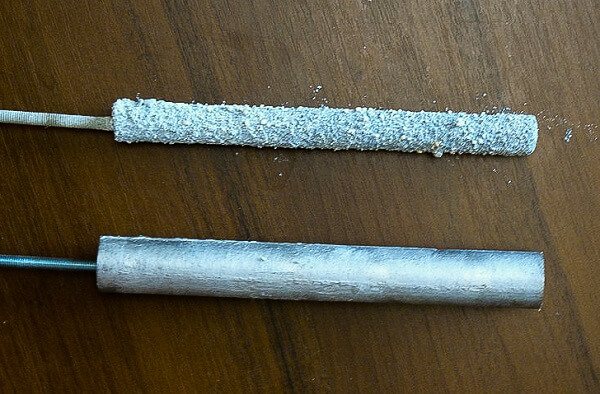 По този начин анодът е просто сплавен щифт, върху който е нанесен слой от магнезиева сплав от 10 до 15 милиметра.