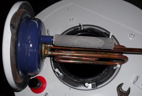 Стоманеното тяло и електрическият нагревателен елемент създават галванична двойка, като тялото се превръща в анод. За да не се срути под въздействието на вода, производителите поставиха близо до нагревателния елемент сплав, съдържаща алуминий.