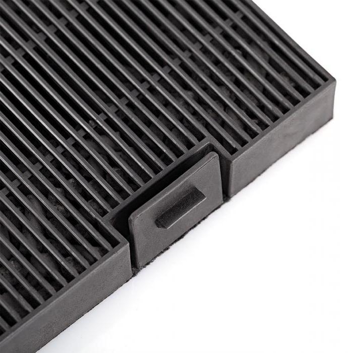 Филтърът от синтетичен материал не просто се задържа на повърхността, но абсорбира мазнината. В класификацията по-горе това са еднократни и акрилни филтри за мазнини. Всички устройства за абсорбиране на синтетично масло са подобни на външен вид на малки килими. Повечето плоски абсорбатори ги имат в своя дизайн.
