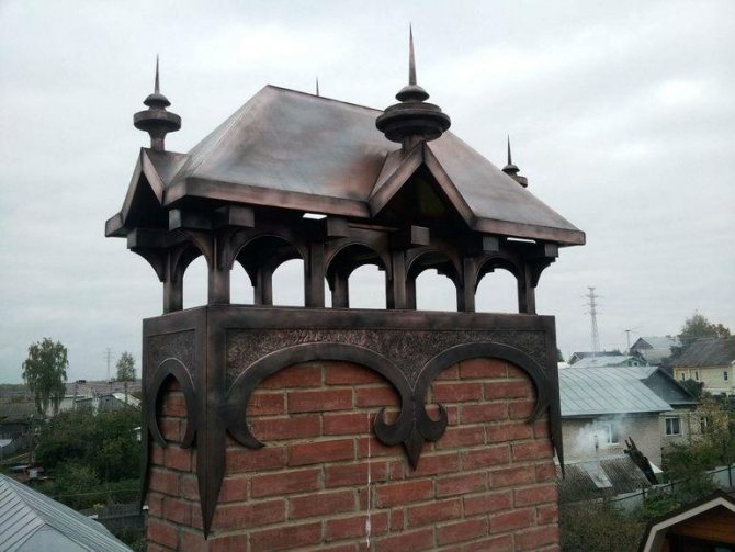 Глава - това устройство е най-сложното по своя дизайн. Тъй като главата не е само горната част на комина, тя представлява комплекс от абсолютно всички елементи, предназначени да предпазват комина. Подглавникът е доста трудно да се направи самостоятелно, но можете да намерите голям избор от дизайни в специализиран магазин.