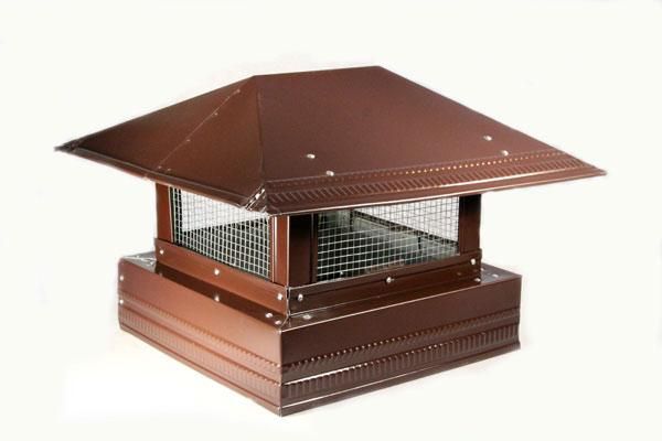 За разлика от кръглата, тя има квадратна или правоъгълна форма. Такъв чадър е инсталиран най-често на изолиран изпускателен вал и е закрепен с нипелна връзка. Входът може да бъде защитен и с мрежа.