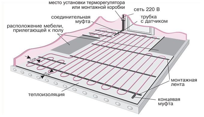 Внимание! Кабелното подово отопление има дълъг експлоатационен живот, ако изберете правилното подово покритие, ламинатът е по-добър.