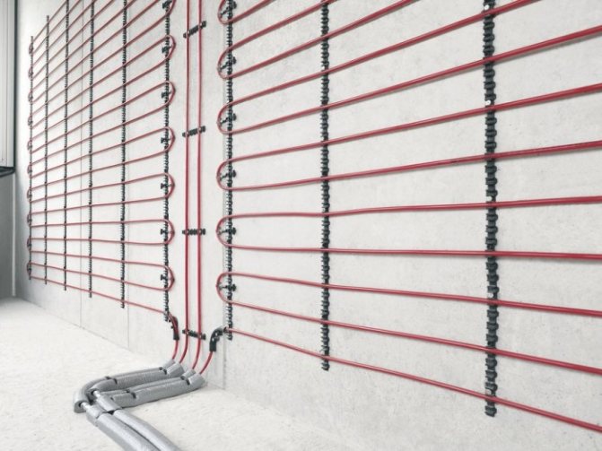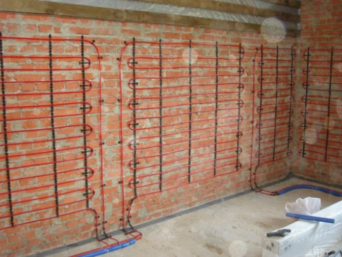- отрицателните страни на полипропилена, използван в този метод на устройството, включват неговия висок коефициент на топлинно разширение, което изисква оборудване на нагревателния щранг със специални завои, които играят ролята на разширителни фуги. Това предотвратява разширяването на пластмасовите отоплителни тръби вътре в стената;