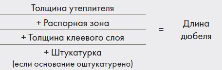 Формулата за изчисляване на дължината на дюбела за различни дебелини на изолацията