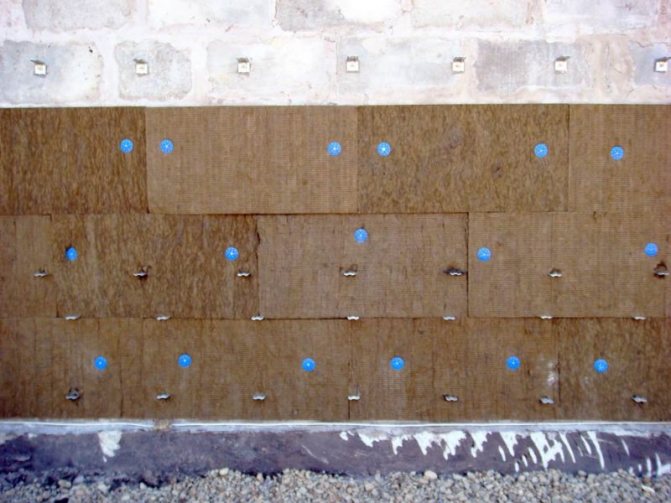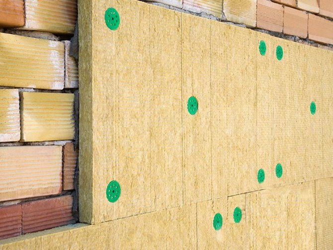 Ако изолацията ще бъде прикрепена към фасадата, трябва да се вземе предвид натоварването от вятъра. Броят на връзките се увеличава, трябва да има поне 6 от тях, разположени в два успоредни реда. Ако сградата е с височина до 20 метра, 1 кв.м. има 7 дюбели. При височина над 20 метра консумацията на крепежни елементи се увеличава до 9 броя.