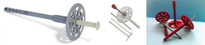 За закрепване на твърда и мека изолация, т.нар гъбени дюбели за топлоизолация, или, с други думи, гъби с форма на ястие. Те са в състояние да държат дори хлабава и крехка изолация. С помощта на гъбен дюбел можете да монтирате материала върху почти всички видове плоски повърхности от бетон, тухли, пенобетон и газобетон, както и върху строителен камък.