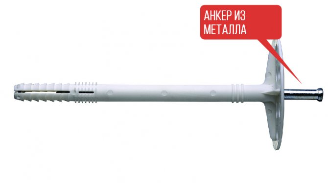 - Дюбелът е направен от пластмаса, пръчката е от метал. Закрепването е подобрено, но металът провежда топлина. Това води до образуването на студен мост.