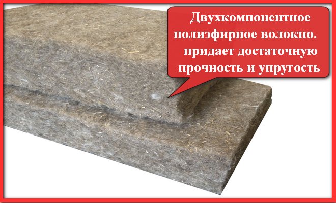 Форма за освобождаване на материала - изтривалки с дебелина 5 или 10 сантиметра. Коефициентът на топлопреминаване е еколна 0,034 W / m ∙ K. Изолацията е достатъчно дишаща, поради което с плътност на опаковане 25-30 kg / m3, тя осигурява достатъчно дишане на стените, без да позволява влагата да премине през нея. Срокът на експлоатация трябва да бъде 75 години.