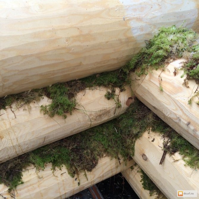 - Ютовата лента или въже ще помогне да се създаде изолационен слой между короните на къщата.