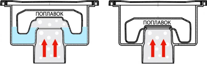 Важно! За правилното функциониране на хидравличното уплътнение в неговата кухина трябва да бъде разположен определен обем вода, който е необходим, за да се предотврати обратен поток на газ и неприятни миризми.