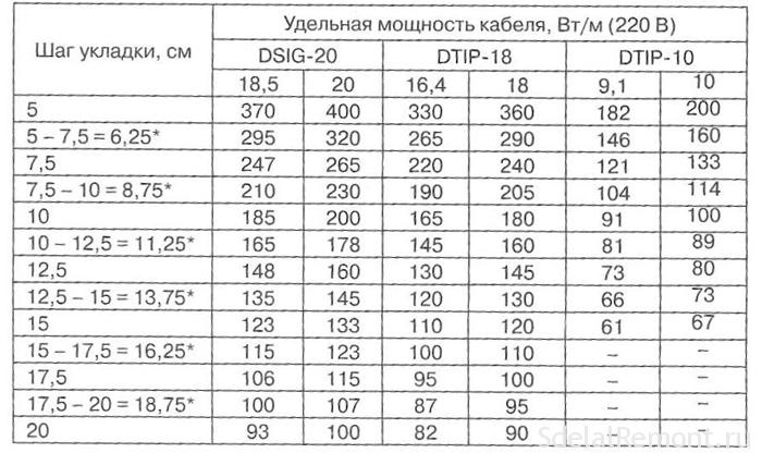 За да изчислите необходимия размер на развъдника, трябва да погледнете в паспорта на кабелния продукт. Той отразява мощността на метър жица. Тя варира от 5W до 150W. Подобна промяна в напрежението на саморегулиращия се кабел се дължи на огромния обхват на неговото използване.