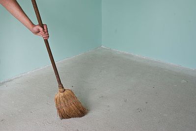 - Основата се подготвя - тя трябва да бъде изравнена и почистена от отломки. Ако подът има големи разлики, тогава е по-добре да го запълните с тънък слой груба замазка.