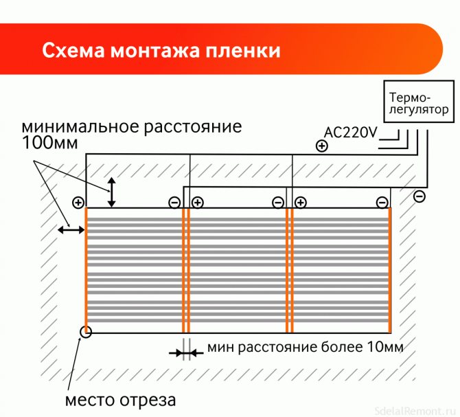 Размерът на помещението, в което ще се движи нагревателният елемент, също е от голямо значение. Не се препоръчва да поставяте веригата под тежки мебели и водопроводни инсталации, това е ненужна загуба на електрическа енергия.