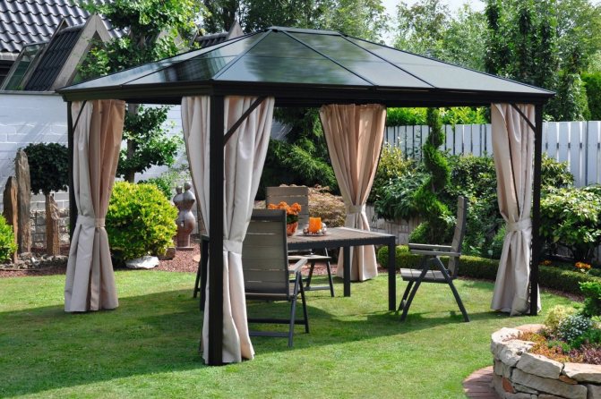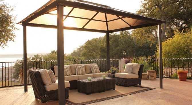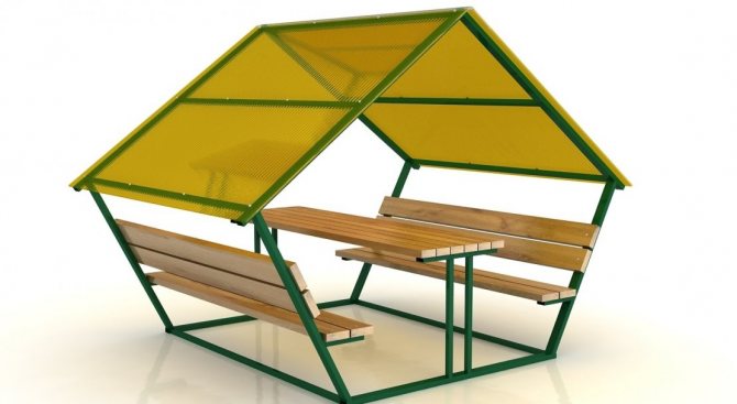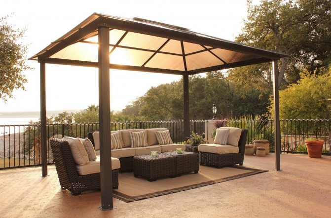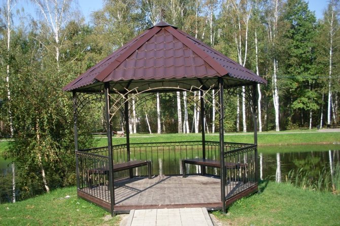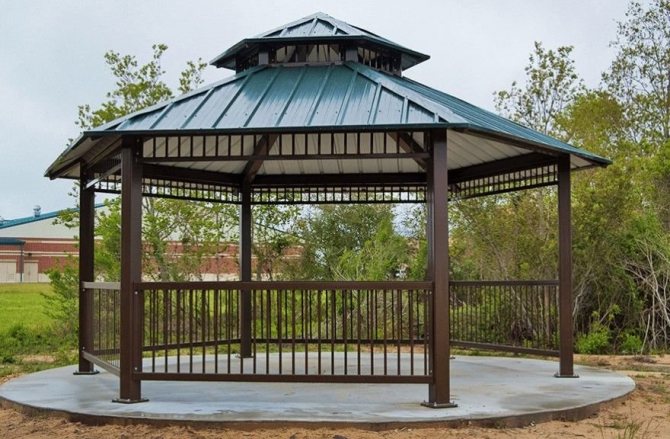 Важно! Металният профил, използван за стълбовете на летния павилион, трябва да бъде здрав, за да придаде стабилност и надеждност на цялата конструкция. Други елементи, в зависимост от функциите на крайния продукт, може да са по-малко трайни.