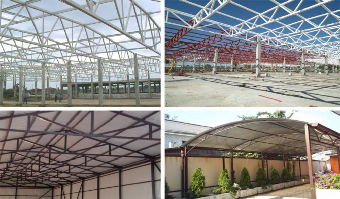 Процесът на изграждане на навеси от профилна тръба и на двата варианта е до голяма степен сходен, но има разлики. В първия случай повечето от връзките могат да бъдат направени на болтове или щифтове, по-мощни и тежки конструкции на навеси трябва да се сглобяват само чрез заваряване, в противен случай ще бъде много по-трудно да се постигне необходимата твърдост на конструкцията от профилна тръба .