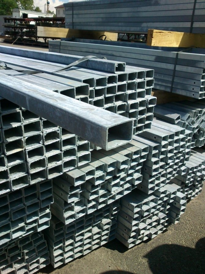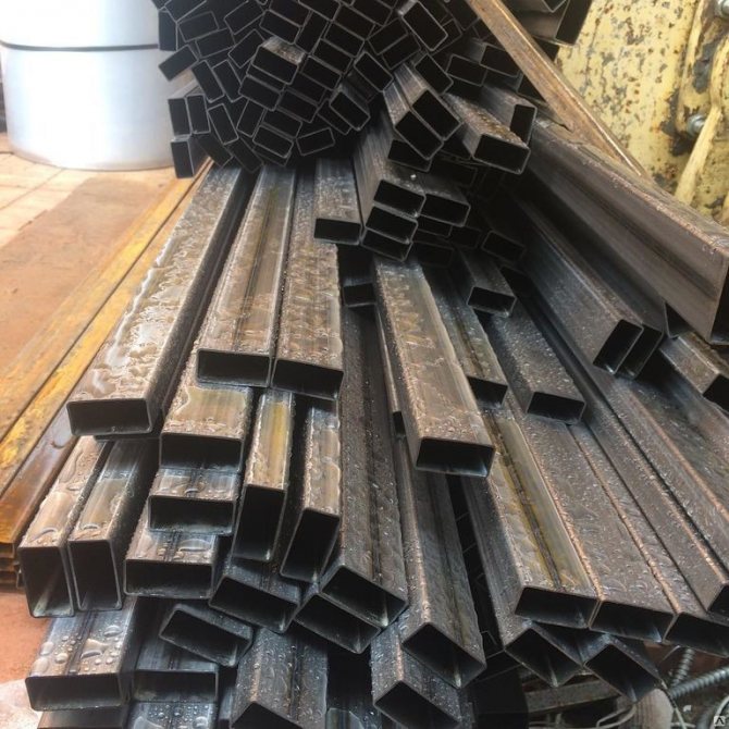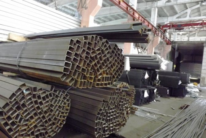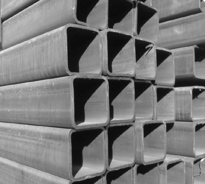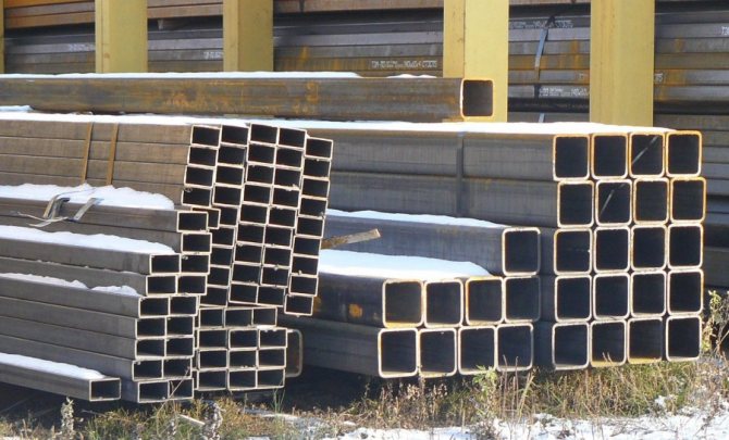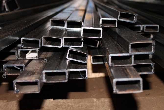 - Метален профил - основният консуматив, поради простотата на работа в такава конструкция, той се използва най-често. По-добре е да закупите продукти с дебелина на стената най-малко 2 мм. Също така не се препоръчва да се купуват прекалено дебели тръби, те обикновено се продават не на работен метър, но на фиксирана цена от 1 кг, следователно при същите размери те ще струват много повече.
