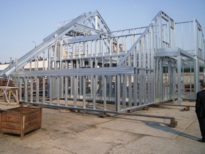 След това крайните покривни ферми се повдигат и монтират, за да не се нарушава геометрията на покрива, рамките се укрепват временно с дървени греди и дъски, а на горните и долните надвеси се монтират хоризонтални надлъжни тръби.