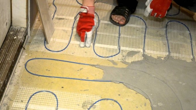 Съвет! Ако сте закупили топъл под под формата на нагревателен кабел, маркирайте с тебешир мястото на местоположението му. Този метод се счита за най-добрият за начинаещ строител.