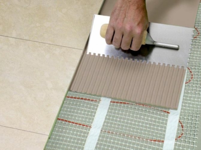 Как да полагаме плочки на топъл електрически под? Достатъчно е да нанесете слой лепило за плочки и веднага да започнете да полагате плочките.
