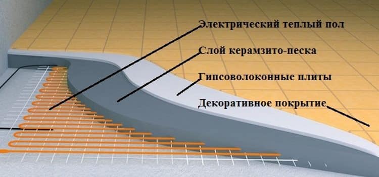 Стандартната конструкция на електрически под включва: