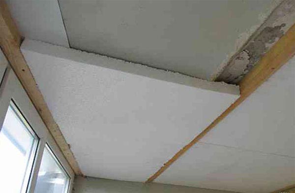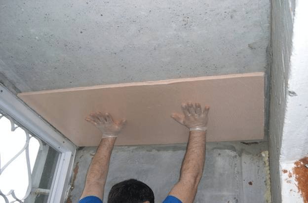 - Ако никой от горните методи не ви подхожда, тогава ще трябва да използвате пяна или пеноплекс. След това фиксирането се извършва с лепило за плочки или лепило за пяна. Таванът е предварително грундиран. След това материалът се намазва с лепило и се нанася върху равнината на покритието. След това трябва да се извършат допълнителни крепежни елементи с помощта на гъбички.