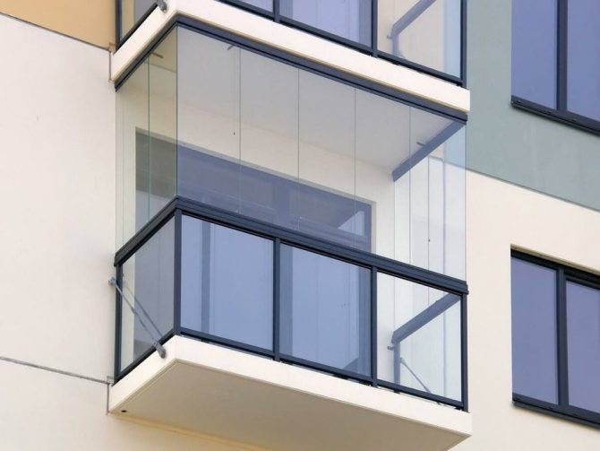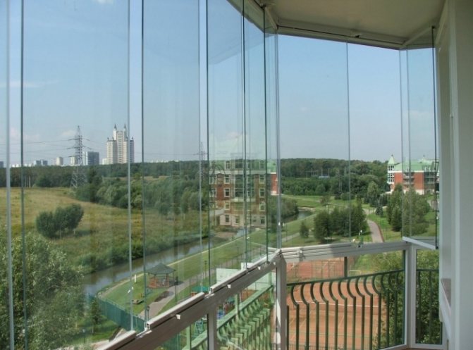 Както подсказва името, този тип остъкляване не предполага наличие на рамки. Този дизайн прилича на изцяло стъклена кутия - създава се впечатлението за безтегловност на балкона.