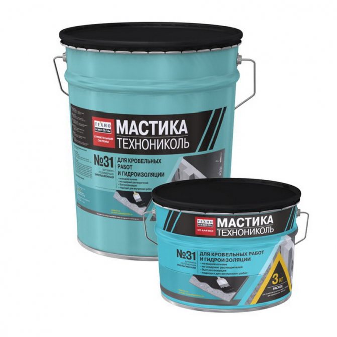 - Битумни мастики (заварена хидроизолация). Материалът е удобен за стари конструкции, тъй като не изисква цялостно почистване на повърхността. Работи добре върху ръжда, влажни или прашни основи. Почистването е необходимо само ако има дебел слой мръсотия, пръст, лед и т.н. Ако процесът на нанасяне на покритие се извършва няколко пъти подред, може да се постигне доста дебел слой. Недостатъците включват взискателност на някои видове температура на приложение, достигаща 160 °, освен това, нанасянето на плътна мастика физически не винаги е удобно при скатен покрив. Също така, битумната мастика е подходяща за хидроизолация на шисти или покривни фуги на ондулин.