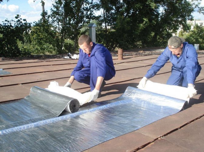 - Покривен материал, пергамент... Материалът, чието инсталиране се извършва от вида на залепването му към защитената повърхност. Монтажът върху скатен покрив е труден поради необходимостта от използване на горещ битум и неудобно разположение на повърхността.