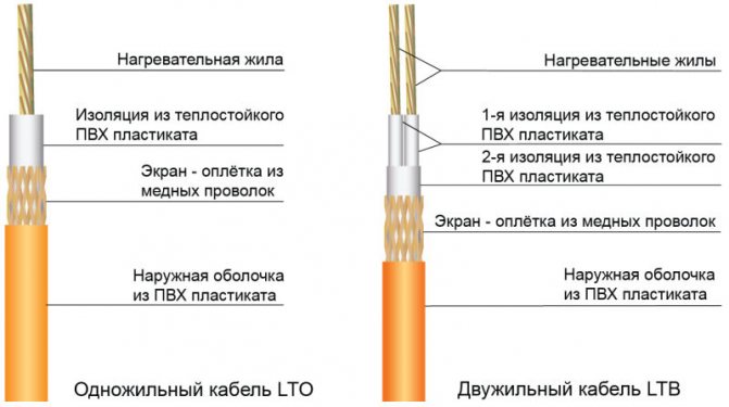 Електрически проводник от резистивен тип за топъл под има едно или две жила, които са поставени в изолираща обвивка, а в двата края са монтирани съединители, с помощта на които е свързан към електрическата мрежа. Ако под замазката се използва едножилен проводник, тогава трябва да се осигури затворена верига. Това означава, че кабелът трябва да бъде поставен на пода по такъв начин, че двата края да се поберат в задната кутия.