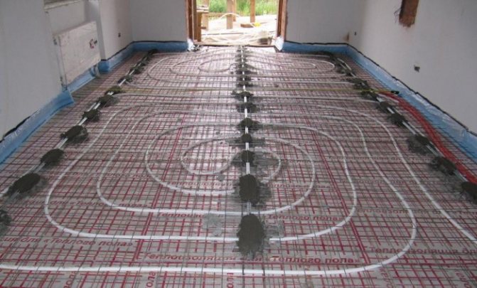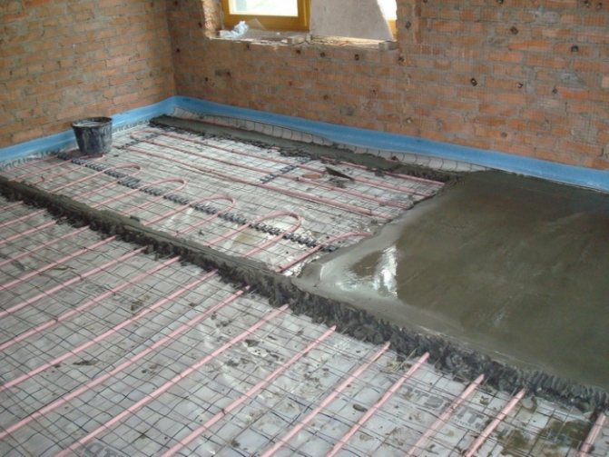 Когато грубата замазка е монтирана, можете да започнете да инсталирате подовото отопление. За да направите това, трябва да изберете електрическа или водна версия, която практически няма да има никакви разлики в последващото изпълнение на изливането. Но не всеки знае как да запълни топъл под. За това утвърдената технология трябва да се следва равномерно.