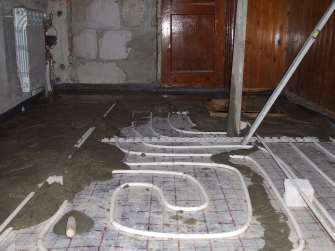 С всичко това на място можете спокойно да се захванете за работа. На първо място, заслужава да се отбележи, че замазката трябва да се издига най-малко 30 mm над нивото на тръбите.