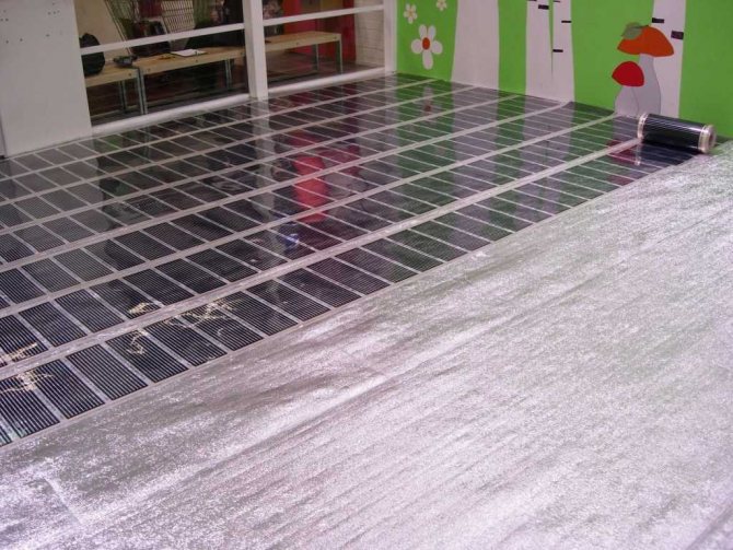 Преди да инсталирате топлоизолацията, основата е покрита с хидроизолационен филм. Той предотвратява образуването на конденз в точките на контакт между долната част на конструкцията за подово отопление и студената основа.