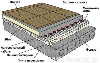 Вторият слой се излива върху топлоизолационния слой. Той ще бъде предназначен за полагане на кабела за подово отопление върху него. Ако всичко се извършва съгласно инструкциите и технологията, тогава инсталирането на кабелния под ще бъде много по-бързо. В резултат резултатът ще зарадва всички.