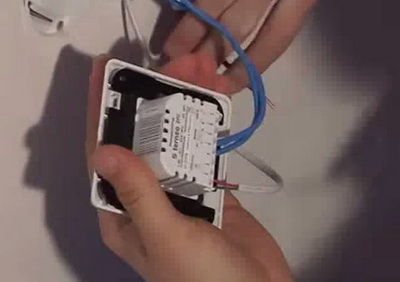 Термостатът е свързан традиционно. Сензорните проводници са монтирани в контактите от едната страна, проводниците за подово отопление от противоположната страна, а захранващите проводници в централните.