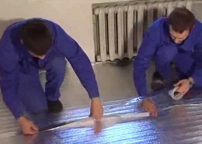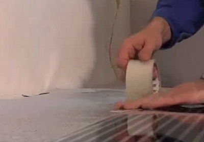 Външните ленти също са залепени с лента към изолационните постелки. Дори един човек може да постави инфрачервения филм топъл под със собствените си ръце.